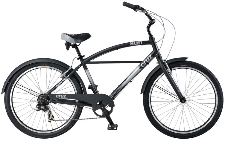 Across campus, around town and wherever you choose to go, Sun's Cruz 7 will get you there in style. The agile aluminum frame boasts classic lines for a cool, old-school flavor, while the steel fork smooths out the ride. And with seven speeds at your disposal, you'll always have the perfect gear for easy climbing and descending. Plus, the springer saddle and wide, swept-back bars deliver an awesome upright position and outstanding comfort. What's more, the Cruz comes with fenders to keep you clean and dry even when road conditions are less than ideal.