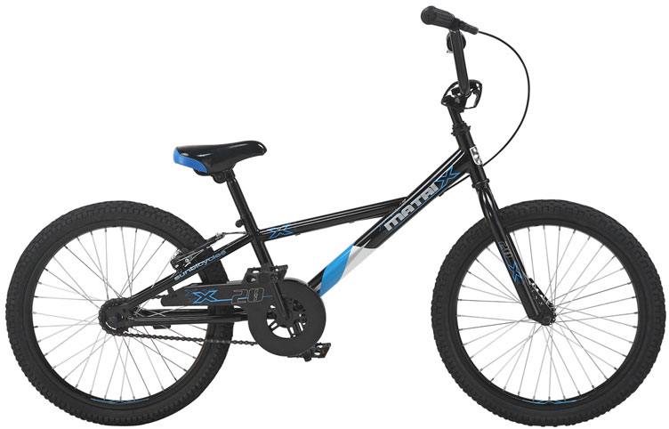 For the child who's first learning to ride, Sun's Matrix is an eye-catching, kid-friendly bike that boasts quality, comfort and safety. This bright, fun 20-inch wheeled bike comes with a sloped-down top tube for easy dismounting and a coaster brake for sure stops. Plus, it features a rear hand brake to help him learn proper braking skills.