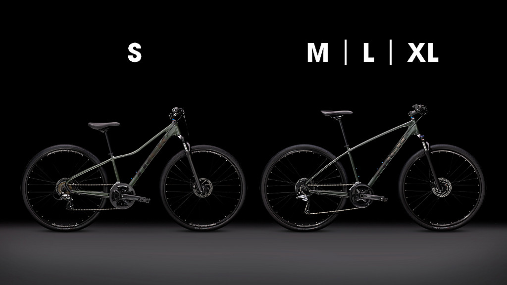 Smaller frames (S) have a top tube that dips down as it approaches the seat tube. This design makes for a lower standover height, which is good for shorter riders because it allows them to straddle their bike more easily. Larger frames (M and up) have a straight top tube because taller riders with longer legs typically don’t have the same issues with standover height.