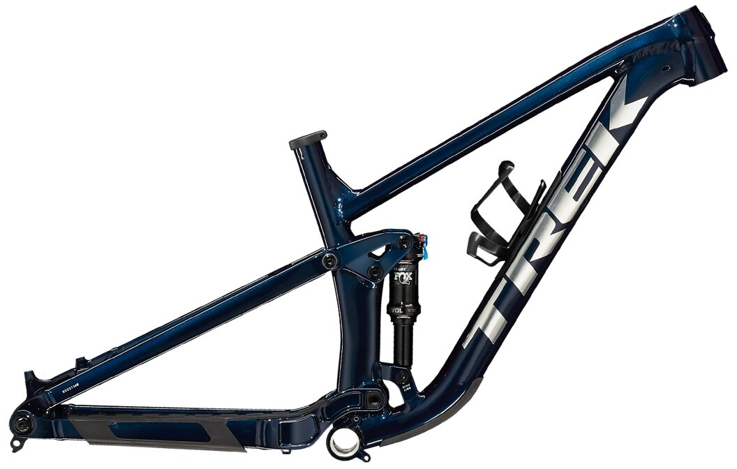 A lightweight Alpha Platinum Aluminum frame internal storage, Mino Link adjustable geometry, a 120mm Fox Performance Float shock with 2-position DPS damper, Knock Block 2.0 headset, 35mm Bontrager Elite stem, and internal cable routing. Designed for a 120mm fork, but can handle up to 130mm of fork travel. Fits 2.4" tires.
